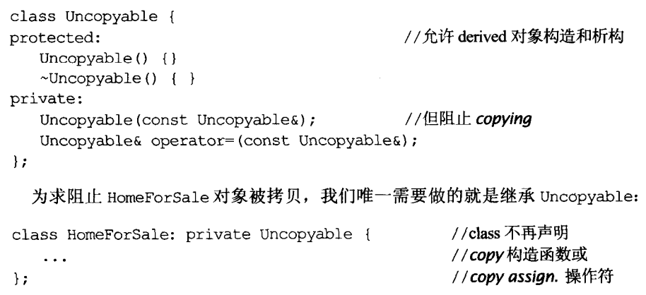 手动声明为private的copy构造函数或copy assignment以阻止自动生成的相应函数,使class不被复制。