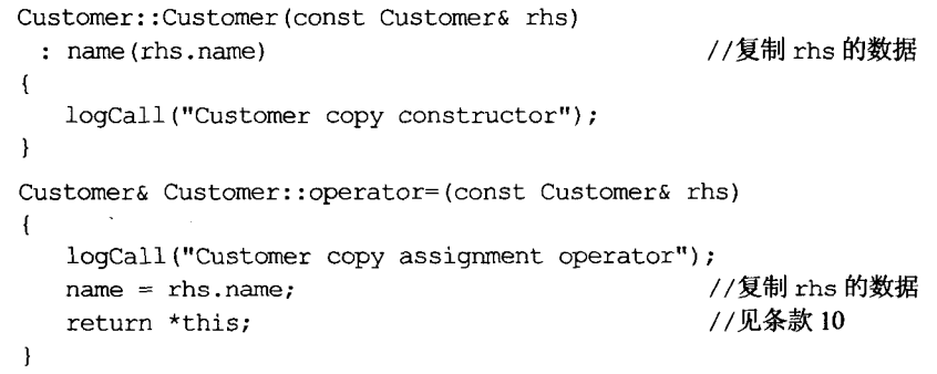 如果你声明自己的copying函数,意思就是告诉编译器你并不喜欢缺省实现中的某些行为。编译器仿佛被冒犯似的,会以一种奇怪的方式回敬:当你的实现代码几乎必然出错时却不告诉你。