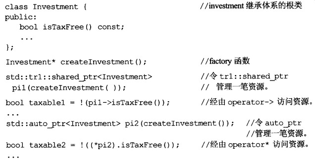 这时候你需要一个函数可将RAII class对象(本例为tr1::shared_ptr)转换为其所内含之原始资源(本例为底部之Investment*)。有两个做法可以达成目标:显式转换和隐式转换。